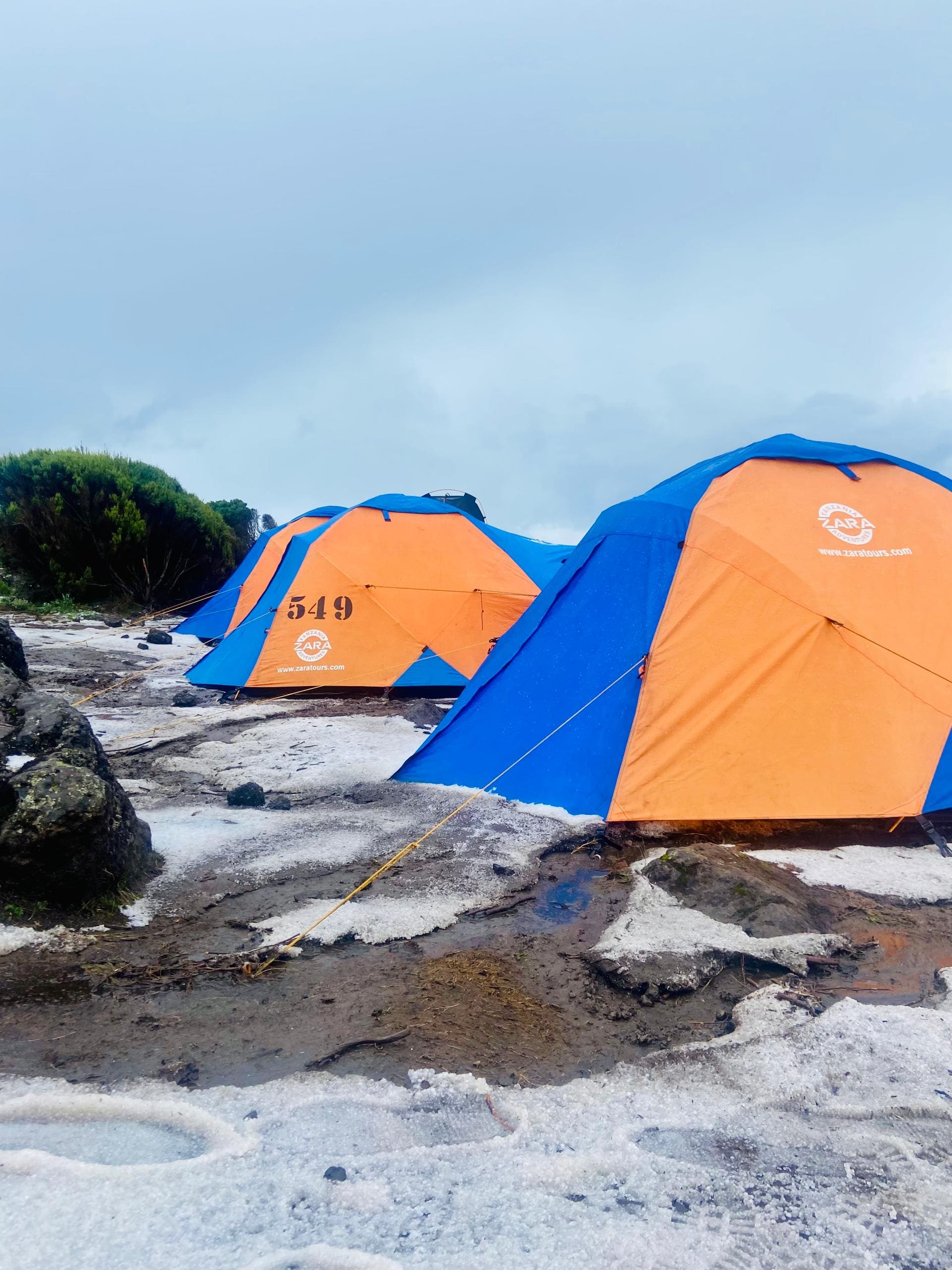 - School Huts Camp: This base camp is used by hikers on the Northern Circuit Route. It is the last resting point for climbers before they reach the Uhuru Peak. It’s a quieter option with fewer crowds due to its remote and rugged location. Most climbers prefer the more popular routes with Kibo or Barafu as their base camps. It allows climbers to gradually acclimate to the high altitude before reaching the summit of Mount Kilimanjaro. There’s also little water here. Only the ones carried by porters can be used.